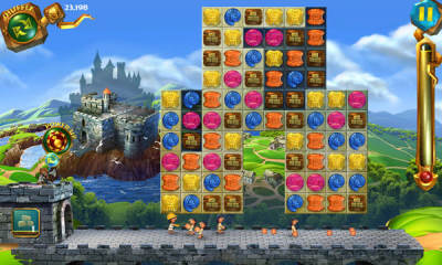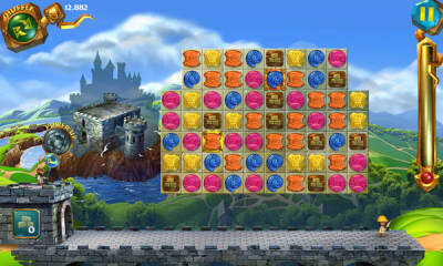 《七大奇迹:奇幻之旅》是一款消除类的休闲益智游戏,游戏采取的是经典的交换消去模式,游戏每一关分为两个阶段,通过消去将背景色全部去除,记得在特殊格子里消去对应的方块会有加分。然后将最上面的一个特殊砖块一点一点挪下来。每一关获得的砖块能够增建建筑的一部分,将建筑完成会有一定的奖励。