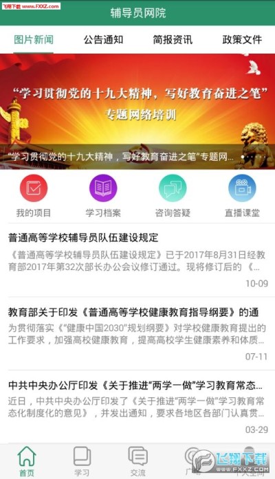 辅导员网院app官方安卓版已经上线了,这个平台的栏目分类比较的细致,数字图书馆中你还可以发布自己的研修成果,还可以查看其它人每天的学习进度以及交流每个人的心得,需要的小伙伴们快来下载辅导员网院手机客户端体验一下试试吧