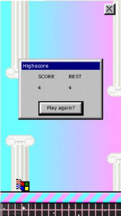 Flappy Window 95通过手指点击屏幕来控制 Windows 小窗口,通过上下两根柱子的缝隙就算你过关,但是两根柱子之间的缝隙较矮的,而你又只能通过上下跳跃来跨越过这段缝隙,老实说,这真的很困难。跳的太高或太低都会撞到柱子从而导致 die。