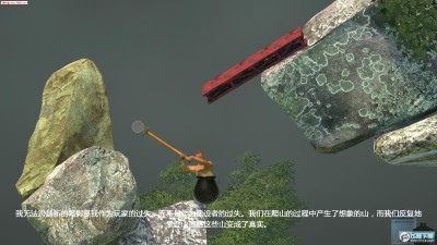 这是一个具有“惩罚”内容的登山攀岩类的游戏,说惩罚是因为游戏内没有存档的机制,操作不当或者失误都可能会导致玩家重头再来。而且游戏内的操作并非那么简单,虽然只需要一个鼠标就能控制,但是力道的和方向判定都是需要深思熟虑的,这也让那些连续玩10几个小时的玩家和主播直接崩溃。另外,时不时出现的令人厌烦的旁白和BGM,简直就是实实在在的嘲讽!