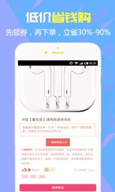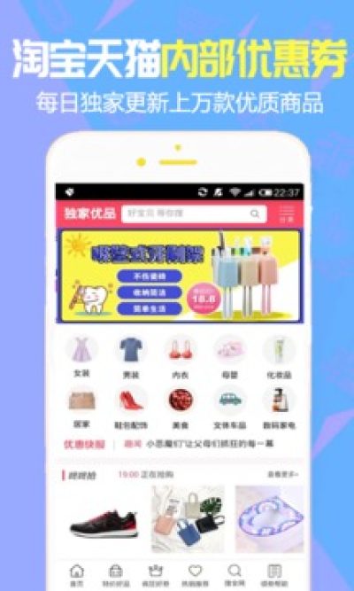 专注网购省钱的app,每天更新大量淘宝天猫优惠券,精选优质店铺优惠券!宗旨是方便大家买到物美价廉的商品,而不必到处去寻找优惠券,我们不仅为大家展示淘宝网上所有的物超所值的商品,同时也积极为大家提供限时省钱优惠券,让大家购物更省钱!