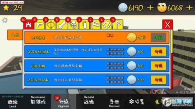 6 科技升级。在游戏中获得的银币可以在游戏前进行科技升级,科技升级非常多(现已经300多个科技升级)。