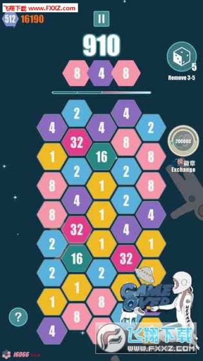 3.如果16以上的数暂时移动不到下方也要第一时间移动到旁边,因为上方自动出的数最大只有8,16以上的数不能自动消除。