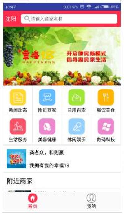 幸福18是一款免费的安卓手机APP,全国各地商家免费入驻,可以将自己的店铺和商品形象展示在20万人 的手机里,生意非常红火。会员免费加入幸福18,能在入驻商家中找到自己中意的商品,购买后享受积分,然后积分换红包!