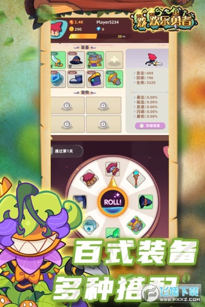 《欢乐勇者》是一款基于转盘抽取装备的角色扮演游戏,采用了Q版清新明亮的画风。玩家通过转盘获得随机等级和品质的装备,提升自己的战斗能力。挑战各种魔物和boss,为了打造一款轻度操作,乐趣丰富的游戏,让玩家不管是在什么情况下,都能轻松体验游戏乐趣,我们着重于简单上手,轻松博弈的设计理念。力求给玩家带来一段舒适的游玩之旅。 利用转盘的力量强化自身,解放玩家的双手,只需点击转盘即可开始属于您的旅程!