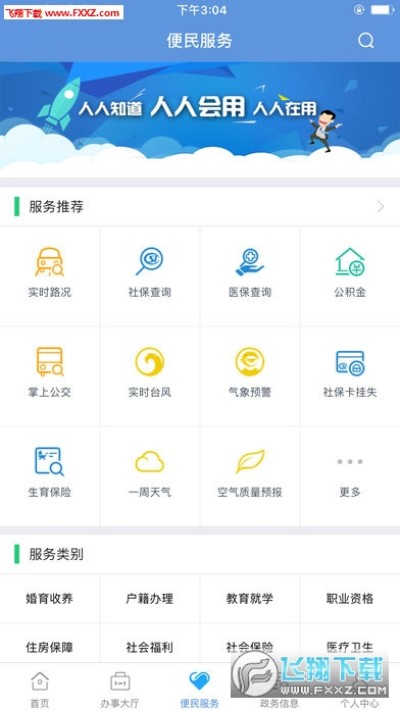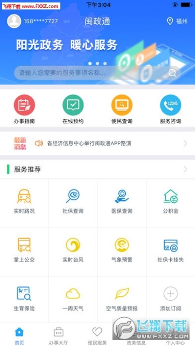 闽政通APP是集办事服务、信息服务、互动服务于一体的互联网+政务服务平台。公众用户可以办理社医保查询、公积金查询、网上办事、网上预约、企业信息查询、医院预约挂号、政务信息查阅、咨询投诉、查看实时公交等业务。法人用户可以进行法人事项的办理、预约等业务。