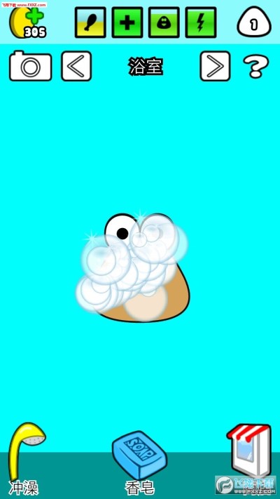 在小土豆吃食物或者玩耍的时候有时候会变脏,这时候就可以到浴室里,拖住香皂涂抹到小土豆身上,然后点击屏幕左下角的冲澡按钮,拖到小土豆身上冲掉香皂沫。身上太脏是会影响到小土豆的健康值得,间接的影响小土豆的成长。