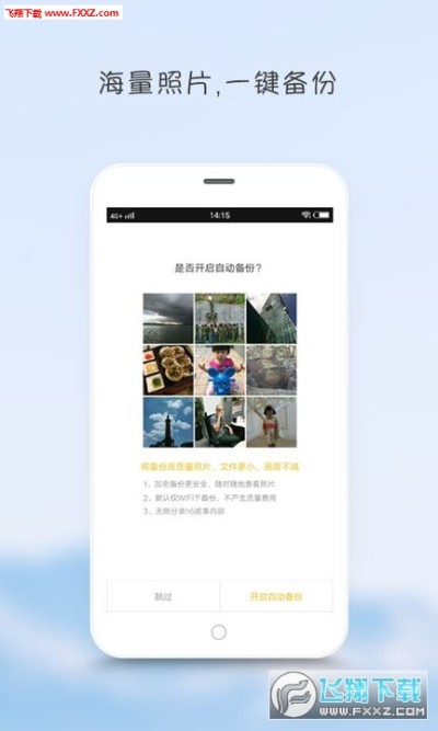 【海量照片,一键备份】为您提供超大安全的云储存空间,海量照片一键备份。为手机瘦身,告别