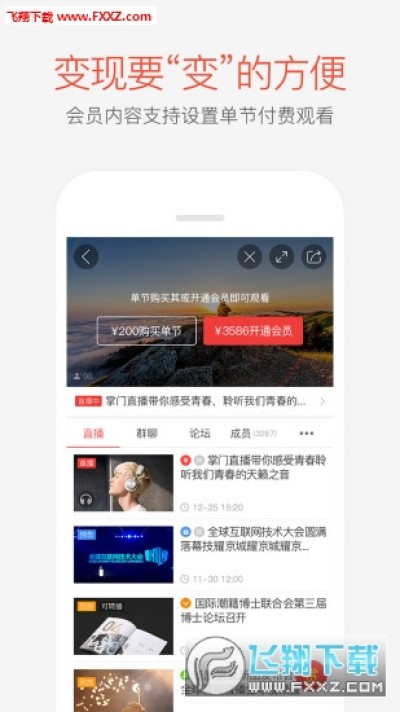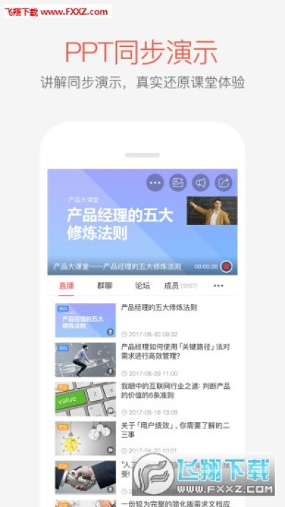 实时直播教学,即时聊天互动,直播连线讨论,PPT同步演示,社群话题分享,知识商业变现。