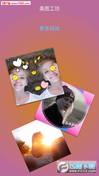 你可以运用按钮或者手指,随意旋转、放大、缩小、翻转图片,最灵活的操作,最丰富的编辑功能;还有几十种颜色和背景图案任你选择;可为图片添加几十种shape形状遮罩;还有强大的拼图功能,几十种滤镜效果,
