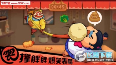 你胖你先吃从游戏名称就能看得出,这是一场吃货间的战斗,两位玩家需要戳杆子去串食物,然后喂到对方嘴里,谁先把对方喂到吃不下东西就赢了!如果喜欢这种对抗类的游戏玩家赶紧来下载在吧。