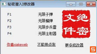不要以为从名字看这是个潜入类游戏,其实这是个光明正大的FPS游戏,你需要用各种枪支弹药干掉敌人。修改器的主要功能就是给你提供了充足的武器补给。