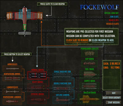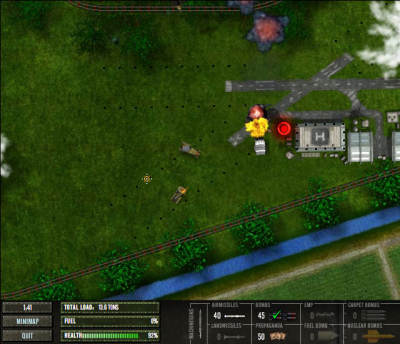 移动鼠标控制方向,鼠标左键点击飞机头即可选择武器,其余位置左键使用武器。另外游戏版本为99999金钱版本,所以没有后顾之忧,尽情轰炸就好了。