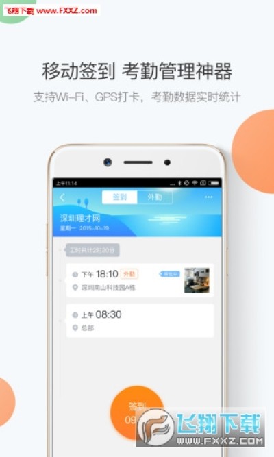移动签到:分为内外勤签到,独有的10分钟智能签到、高精度Wi-Fi签到