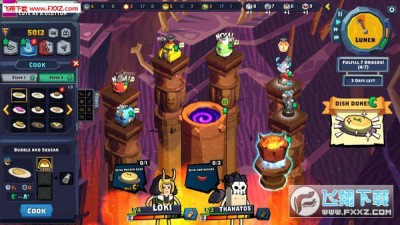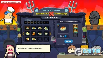 游戏中的整体画风比较的偏卡通,玩家将会扮演大厨土豆,在一心想前往天堂的目标下,却误打误撞的来到了地狱,然而你在这里的任务就是烹饪出各种各样的美食佳肴,丰富的料理会带给你无比诱人的绝佳体验。另外游戏中你还会遇到诸神哦,你能够满足他们吗?