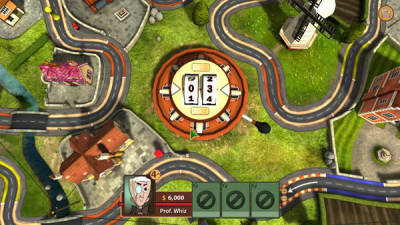 点击转盘来获得行动点数,如果转到闪电,则可以获得道具奖励。中途可以购买房屋,如果其他玩家走到你的房屋地盘上,就必须要缴纳过路费。