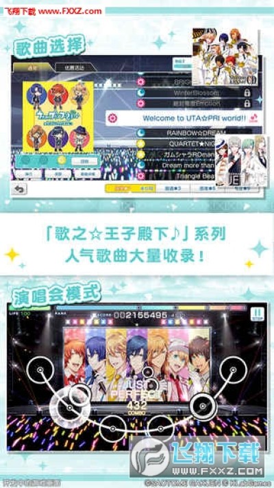 歌之王子殿下闪耀之星手游是一款音乐题材的手游,游戏中收录了众多《歌之☆王子殿下♪》系列的人气歌曲,玩家可以随意的选择自己喜欢的音乐,游戏中你会遇到自己的偶像,每天都可以和他们交流,想知道你会和偶像发生什么事情吗,赶紧来飞翔下载体验吧。