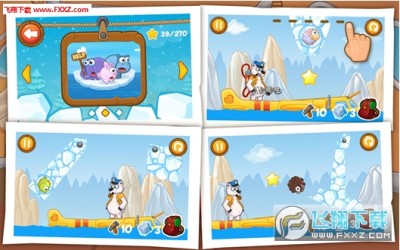 被冰冻的动物游戏是一款娱乐消遣的休闲闯关游戏,卡通风格的游戏画风,简单易懂的游戏操作,玩家将穿过重重障碍,来到被冰冻的动物身边,轻划手指帮助它们解冻,喜欢的玩家可以下载一试。