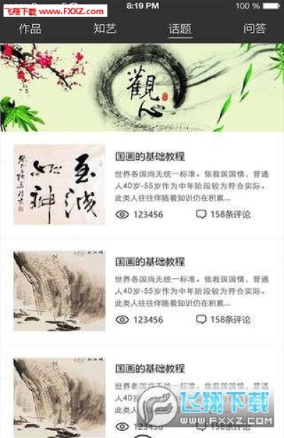 拥有专业的话题、问答模块,来保证艺术专业水平。从而将中国传统书画艺术文化带进千家万户,做到真正的艺术传承。