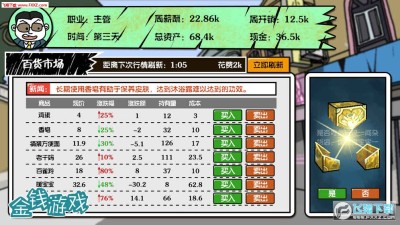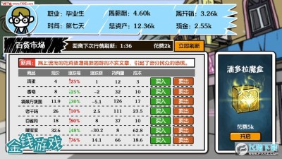 在这个游戏里,你要运用聪明才智,从几百种新闻里面,靠敏锐的商业嗅觉,把握即将到来的商机,赚钱赚钱赚钱,等上人生巅峰!