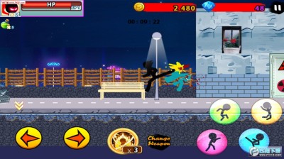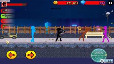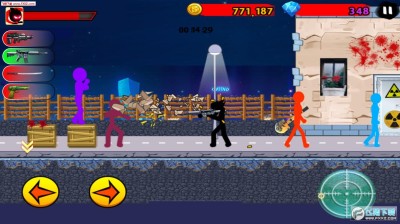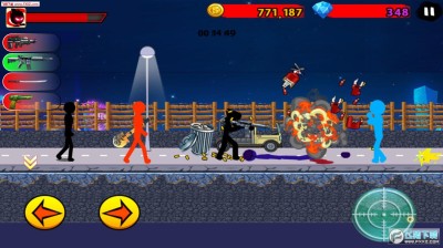 愤怒的火柴人7是一款画面非常火爆的横版动作游戏,玩家要控制火柴人不断的跳跃躲避敌人的子弹,然后通过强大的活力压制敌人,游戏采用比较常见的虚拟摇杆控制,左边是方向按钮,右边是攻击以及跳跃按钮,游戏中可以购买各种武器,然后通过不断的杀敌来赚取金钱再进行升级。