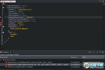 虽然Angular v5不一定需要TypeScript 2.5,但我们也增加了对这个版本的支持。 您可以访问一些新快速修复和编译器,这将更好地处理同一文件的多个分辨率。 我们还为tsconfig.json文件添加了验证 - 无效配置现在将被检测为错误,并将显示在编辑器和Problems视图中。