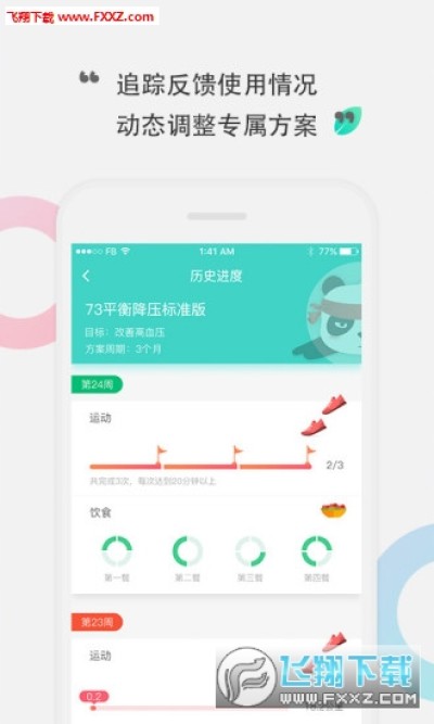 咕咚健康与科研机构共建联合实验室,将一套科学、有效的运动加饮食健康方法进行智能转换应用,我们叫TA《73平衡健康法》。该方法能够改善因高血压、高血糖、饮食不均衡造成的亚健康问题,以游戏方式激励用户完成每周所需的运动和饮食任务,调节改善用户身体情况,从而开始健康的生活方式。