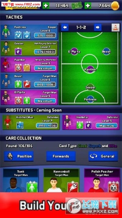 收集106个不同的玩家卡片,以加强你的甲板,成为一个无与伦比的竞技场经理。使用3种不同类型的“玩家卡” - “优秀”,“精湛”和“精英”混合搭配,为您提供了大量的组合选择。