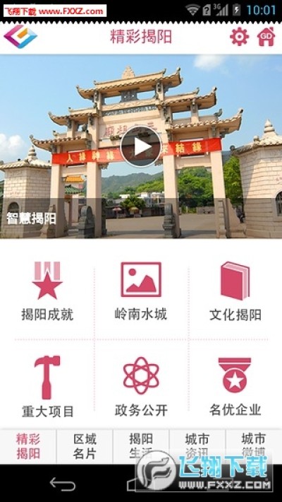 智慧揭阳城市名片应用,是于沃.智慧广东移动互联网公共服务平台为基础,借力揭阳联通精品3G网络,针对量身定制的手机客户端APP应用,整合揭阳市各类强政、兴业、惠民的公共服务资源,从政务公开、名优企业、揭阳论坛、揭阳新闻、电视直播等主要模块,通过省市联动的方式进行建设运营,让市民及时了解政务公开,社会动态、生活资讯等信息,积极推动智慧城市建设,助力揭阳市政府 “智慧揭阳”城市信息化新品牌的打造和传播!