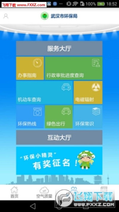 武汉环保官方app分为首页、服务大厅、政策公开、空气质量四个板块,实时发布公告新闻、环保业务,支持机动车、行政审批进度、电磁辐射等查询,一键提供办事指南,普及环保知识,每日更新市内空气质量,建设健康绿色家园,让你放心出行