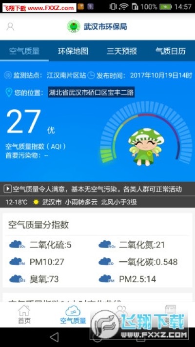 建立权威空气质量指数及首要污染物数据发布终端,将武汉市空气质量数据,采用主动推送至全民环保APP模式。伴随清晨第一缕阳光,打开手机便能知晓当日的空气状况。外地出差也无需担忧,APP会自动识别当前用户所处地理位置,推送当前地理位置的空气质量。“武汉环保”APP还具有强大的预知功能,可查看24小时变化曲线,未来三天的空气质量预报;通过精美地图实时展示武汉市所有空气质量监测站点的监测数据。告别信息滞后,雾霾时代,你的出行,由你做主!