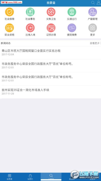 以“我”、“我要看”、“我要查”、“我要办”、“我要问”、“我要评”和“我的”多个栏目,细分群众办事诉求。