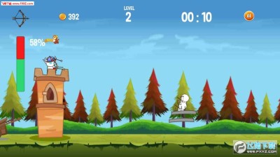 在游戏中,你将扮演一名使用弓箭的城堡的守卫,在一定时间内尽可能多的消灭从虚空中传送过来的敌人。通过在屏幕上点击并拖动控制弓箭射出的力量和角度,射向敌人,获取金币并不断刷新消灭敌人的最高纪录!