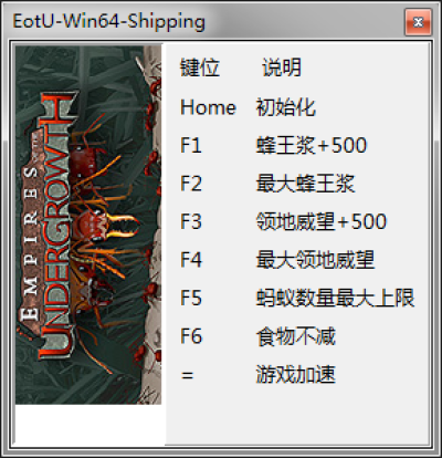 地下蚁国 v0.1141七项修改器,一共可以给玩家提供最大领地声望、食物不减、超级速度、蚂蚁最大数量等等功能选项,非常的实用哦!对此有需求的玩家朋友们赶紧来下载试试吧!