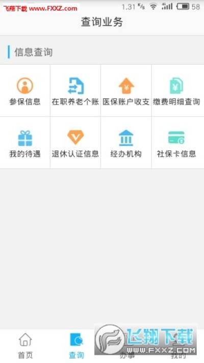 一、查询服务功能。查询本人参保基本信息,如:各项社会保险(城镇职工养老保险、基本医疗保险、工伤保险、生育保险、失业保险)的参保缴费及待遇发放情况,医保个人账户收支情况,社会保障卡相关信息等。