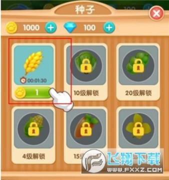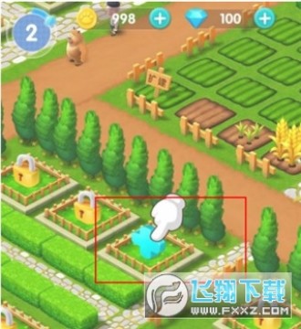 3、接着进入熊熊乐园,点击拾取农产物,然后选择种子,播种到土地里,并给农产物浇水。