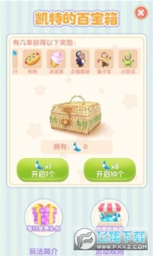 6、使用专属道具月亮石可开启百宝箱,每次开启宝箱需消耗1个月亮石,可使用8个月亮石,一次开启十个宝箱,开启宝箱可随机获得熊熊乐园、玩偶公仔、食物和金币等。