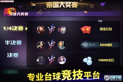 想从草根进阶成台球明星?就来台球帝国吧!我们为广大台球爱好者精心设计了真实的2D台球游戏,解密各种花式台球的玩法,挑战世界级台球明星大腕。在这儿,不只有战胜对手的快感,更有化茧城蝶的涅槃式体验。