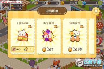 (2)在弹出的招揽顾客界面中,选择一个招揽方式后点击确定即可开始。进行招揽顾客会消耗一定的金币,并获得一定的经验值。不同的招揽方式需要的等待时间和狗狗数会各不相同。招揽方式会随着店铺等级的提升不断解锁,越靠近右侧的招揽方式,其解锁等级会越高。