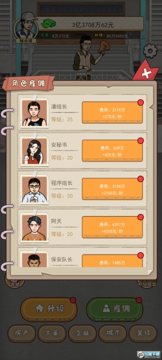 大叔创业记免广告最新版是一款模拟经营手游,游戏里玩家需要从头开始创业,在游戏里结交各种好友,获取更多的游戏信息寻找商机,发展各种关系一起互联网创业,体验真实的生活和工作时间,通过投资来赚取更多的金钱,维护人际关系游戏里有不同个性的NPC等你来交往,想要体验的小伙伴可以下载!