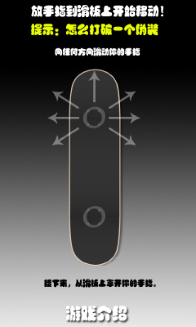 1.使用手指代替双脚来控制滑板,能够模拟滑板的各个动作