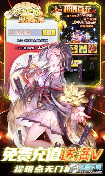 ★上线送V10,充值比例1:1000,任务免费升满V。