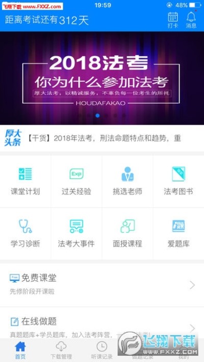 厚大法考app是专门为司法考试的朋友准备的,提供免费的网络学习,有课程辅导、名师讲解、习题练习、错题本、模拟考试,题库练习等多方面的学习内容,解决考生们的考试困扰,并且可以随时随地的学习,需要的朋友赶紧下载使用吧。