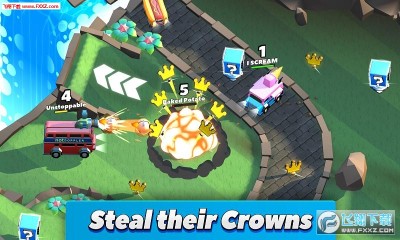 《汽车大碰撞》是一款非常好玩的休闲娱乐游戏,游戏中玩家需要在有限的场景内吃掉更多的小皇冠,获得皇冠数量最多者即可获得胜利,当然不会让你这么安稳的吃皇冠,所有的车都可以改装加上强大的武器,一不留神就会被敌人的飞弹击中,一定要小心翼翼,赶快来下载体验吧!!!