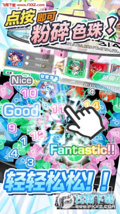 《粉碎狂热》中只要透过点按的简单操作就可以体验到最高级的「爽快感」。只要1次点按就可以连锁粉碎色珠。超华丽效果的粉碎技能、一发逆转的狂热模式等,多样化的系统让你感受更多的「爽快感」!
