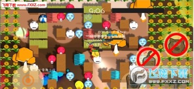 用蓝蘑菇围住红蘑菇会发生爆炸,爆炸的红色蘑菇会变为分数。(可以借助岩石,地图边缘,树,彩球)