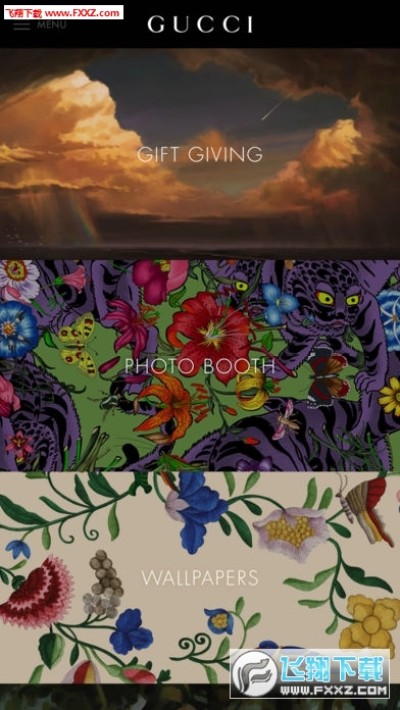 据了解,Gucci App首页菜单显示,分别为“GIFT GIVING”、“PHOTO BOOTH”、“WALLPAPERS”、“GUCCIARTWALL”、“GUCCI PLACES”、“GUCCI BLOOM”、“DIY”几个类目。
