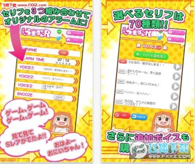值得注意的是,该APP配音由众多亲自编写,两位角色声优献声,App内收录了90种以上的语音,用家可以自行搭配最多3条来组成小埋叫你起床的语音。