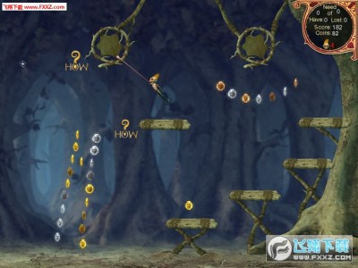 Wik很喜欢收集宝石,游戏用鼠标控制,右键向某处点击一下他就会朝那个方向跳跃,如果金币或者宝石在很高的地方,可以粘着于其他物体并帮助他飞翔。