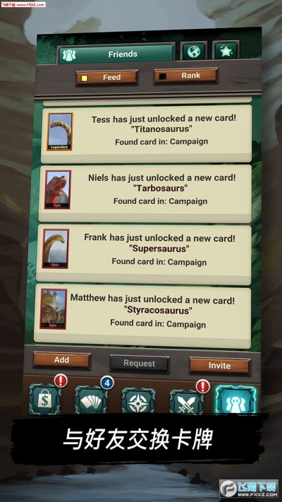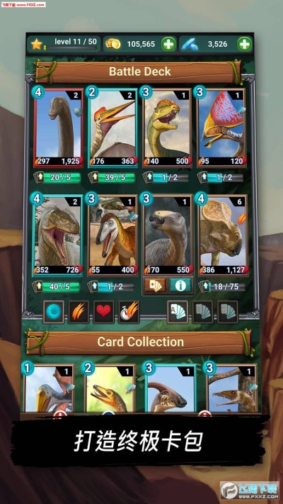 在这款背景设置于史前时代,充满史诗级恐龙的TCG游戏中,你将接受任务挑战,在路上打败强大的敌人并生存,并最终通知这个侏罗纪世界。